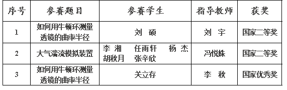 表1 我校在全国大学生物理实验竞赛获奖情况表