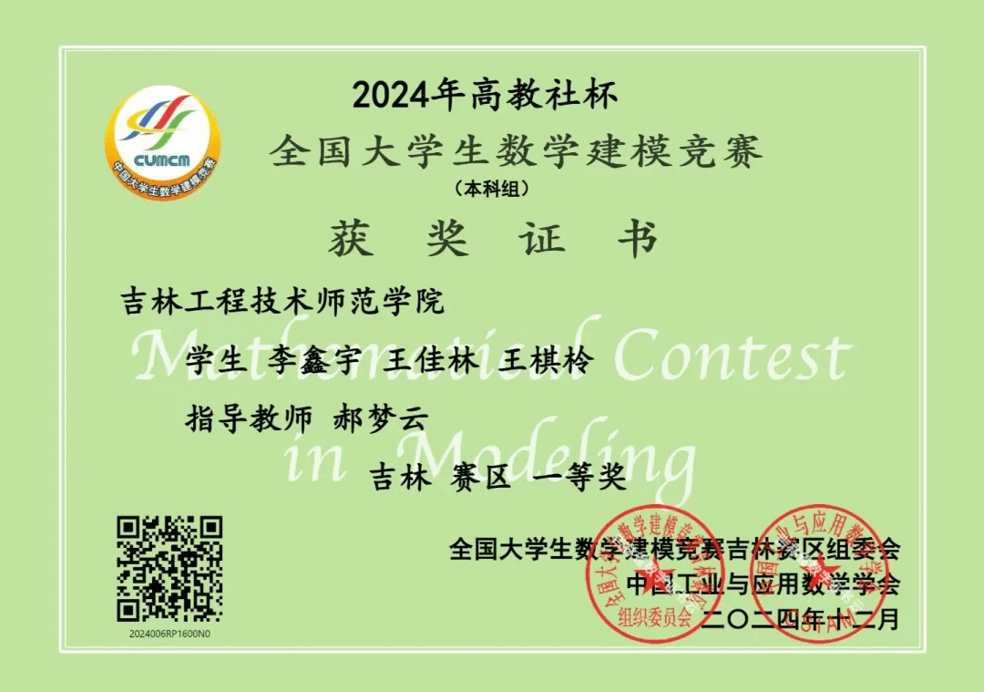 高教社杯全国大学生数学建模竞赛是由中国工业与应用数学学会主办的教育部学科竞赛白名单A类赛事,2024高教社杯全国大学生数学建模竞赛于2024年9月5日18时至9月8日20时进行,有来自全国及美国、英国、澳大利亚、新加坡、马来西亚等国家和地区的1788所院校/校区,近20万名大学生参与,共计65761支参赛队伍,其中本科组59278队、高职高专组6483队。此项比赛是我国高等教育领域影响力深远的学科竞赛之一,其对培养学生创新思维、实践能力和团队协作精神具有极为重要的作用。我校在本次竞赛中表现非凡,共有34支队伍积极参与本次比赛,其中26支队伍脱颖分获一、二、三等奖。(详细请见附表)。