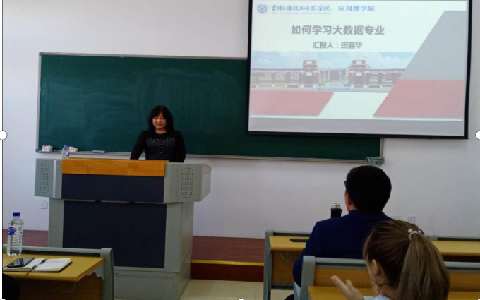田丽华教授结合专业特点做了关于“数据科学与大数据技术专业学生如何学习”的讲座。从专业方向、课内学习、课外学习、大数据专业模型四方面展开,强调学生不但要学会学习,同时要能够实践。田丽华教授对大数据专业的未来进行展望,同时建议同学们选择合适的学习方法:苦学——好学——会学;主动参与——合作学习——探究学习。最后以习近平总书记的一句话:“有志向就有事业,有本事就有舞台”作为结束语。