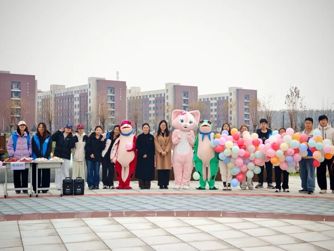 为了让同学们能充分放松身心、深度参与互动,活动准备了柔软的拥抱玩偶、足量气球及打卡道具。同学们通过与玩偶拍照打卡、比赛踩气球、组队参与气球保卫战等形式,将内心的疲惫与压力转化为实际行动中的释放。现场氛围热烈温馨,大家在互动实践中逐渐卸下压力,彼此的交流也因温暖的传递而愈发融洽。