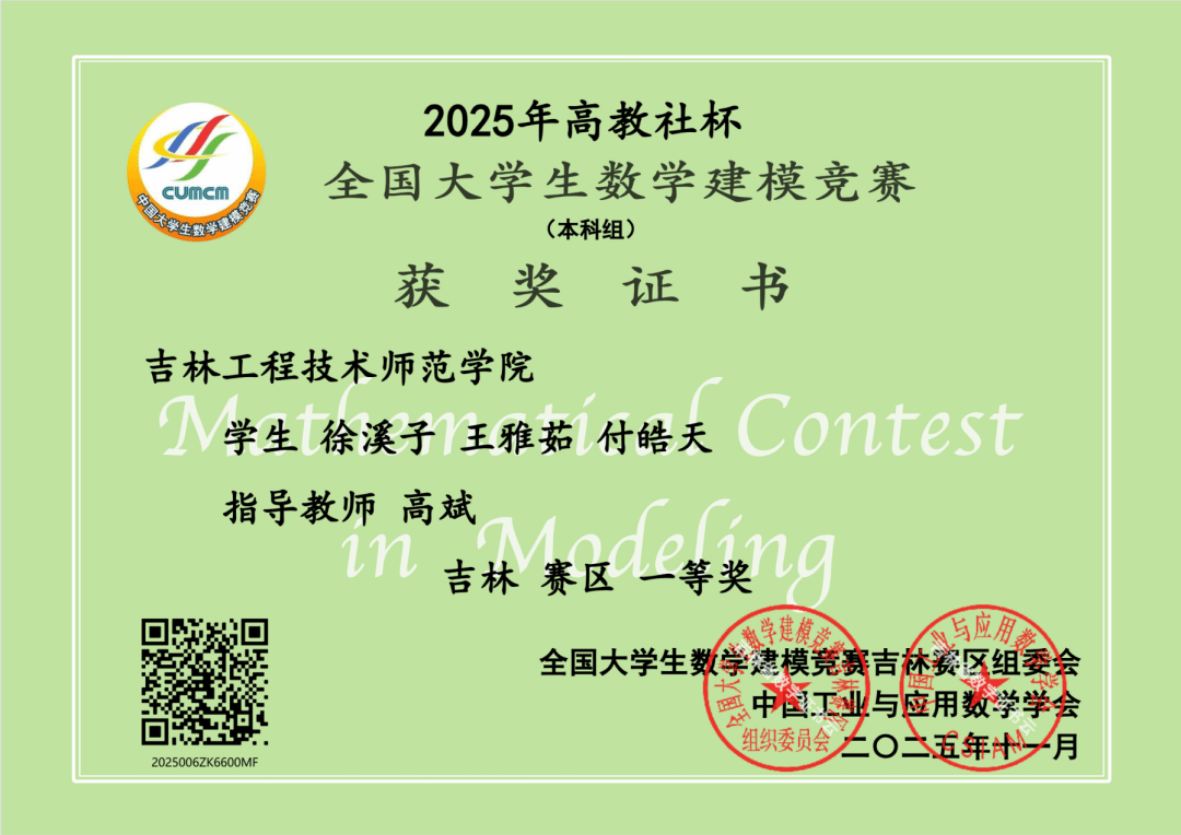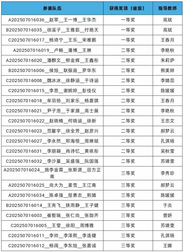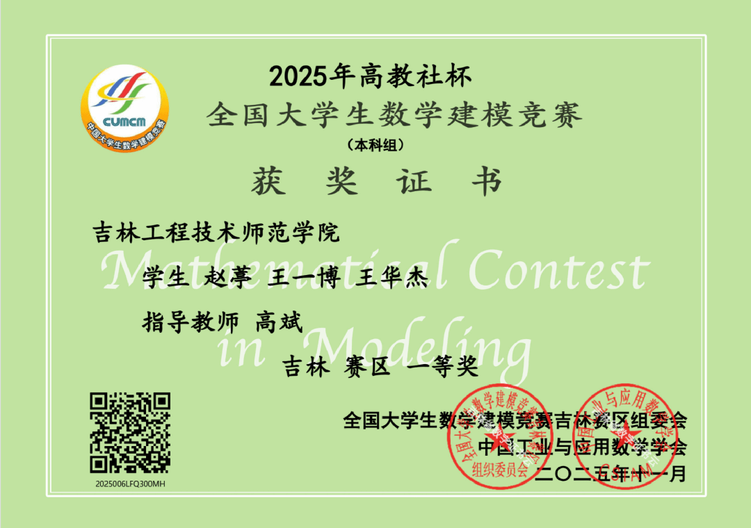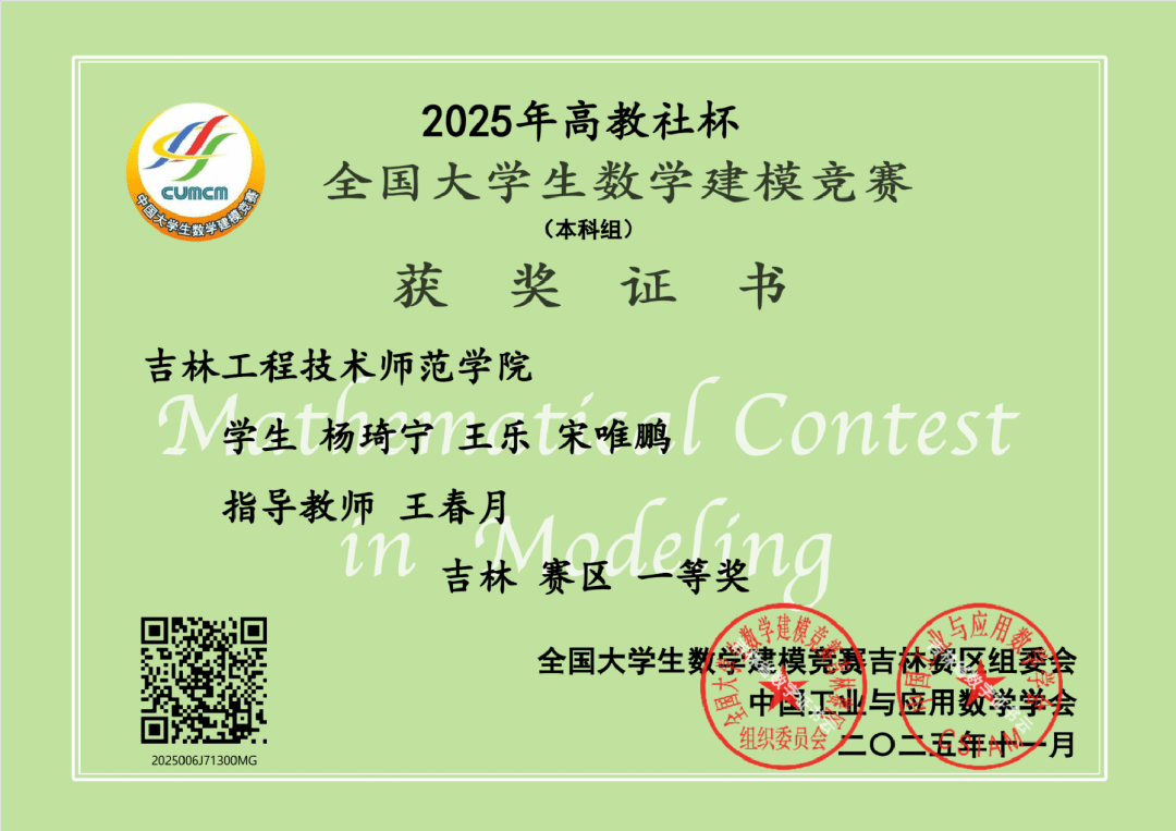 近日,2025年高教社杯全国大学生数学建模竞赛成绩揭晓,我校今年共计36支队伍108人参赛报名,我校参赛学生依靠出色的数学建模能力和精诚团结的协作精神,在该项竞赛中再一次创造了优异成绩并获奖项目和总数更是达到历史新高,共有23个参赛队获奖,其中省级一等奖3项、省级二等奖12项、省级三等奖8项。