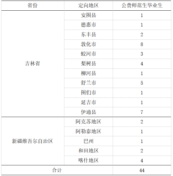 yl6776永利集团从2015年至今,一直承担部分吉林省及新疆维吾尔自治区职业教育类公费师范生的培养任务,该部分学生毕业后直接赴定向地区从事职教师资岗位。近五年共向吉林省、新疆维吾尔自治区的16个县市、地州共输出44名职教师资,目前仍有34名公费师范生在校读书,未来仍会源源不断向各地区输送职教师资新鲜血液。