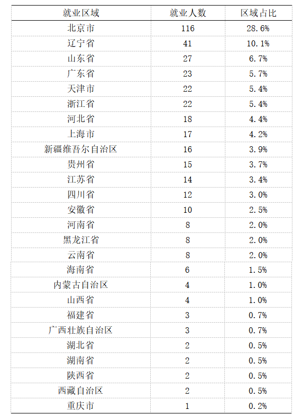 二、近五年毕业生就业地区